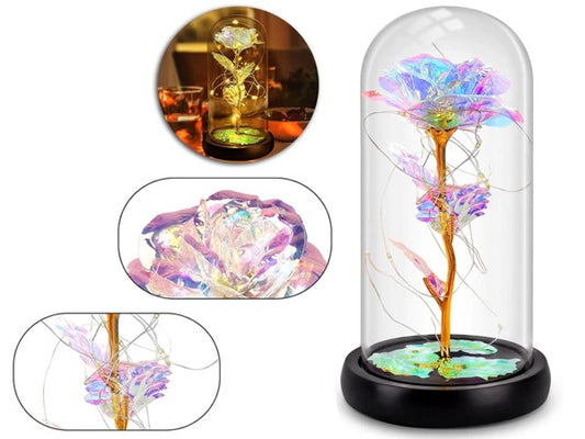 Rosa eterna in vetro, regalo in vetro luminoso a LED, sfumature oro