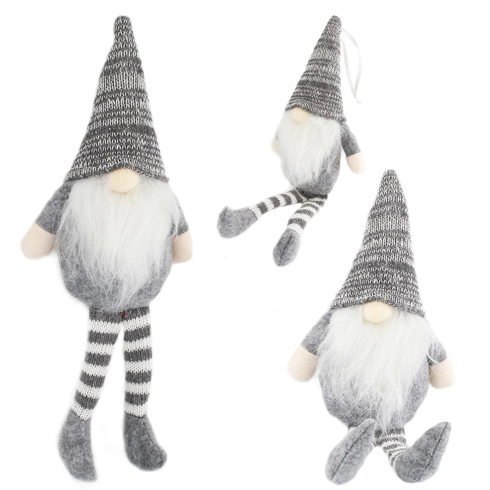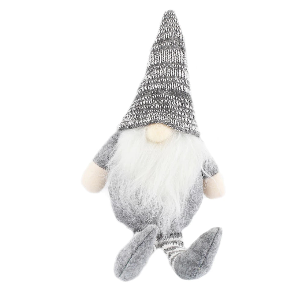 Gnomo di natale in morbido tessuto grigio con gambe lunghe.
